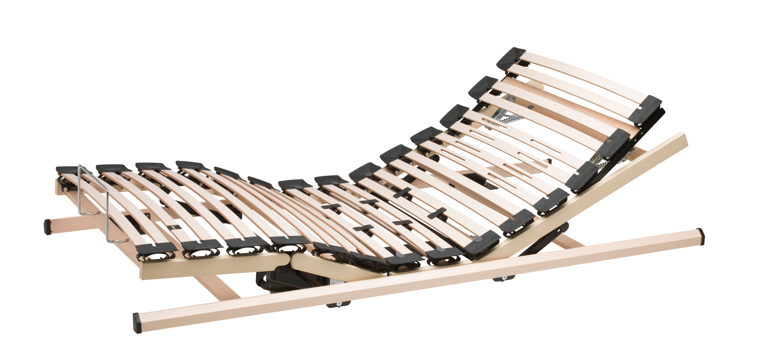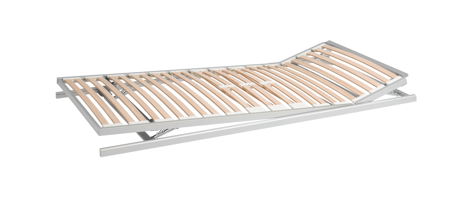 Der leichte Einlegerahmen aus Aluminium, mit mehrschichtigen Federleisten aus Buchenholz.
